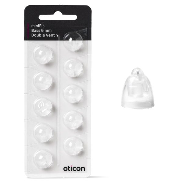 Oticon miniFit Bass 6 mm Double Vent are made of soft material and adapt to your ear. The soft lamellas ensure a perfect fit in the ear canal, and the ventilation holes allow your ear and ear canal to breathe. This provides an individualized fit and prevents a closed-off feeling in the ear canal when using Oticon Minifit Domes.
