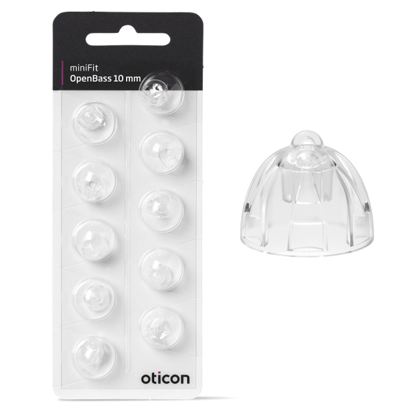 Oticon OpenBass is a dome for your hearing aid with Oticon’s miniFit system. The dome provides a very tight seal, creating an intense sound.