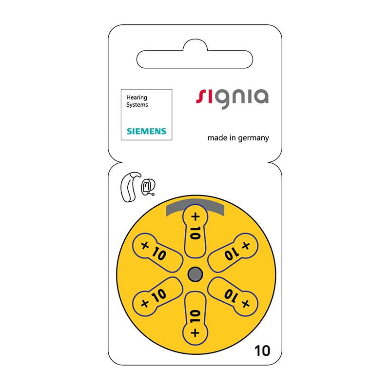 The packaging for Signia batteries is color coded according to size. Check what size battery your hearing aid uses, as it is very important for it to be the correct size. You do this by looking in the manual or in the battery drawer of your hearing aid. Here it is listed which size battery you need to buy.