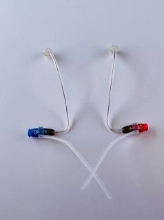 Color codes have been used for easier recognition of right and left receivers. You can easily distinguish between the right and left units with the red and blue color codes, respectively. The receivers display a red end for the right ear and a blue end for the left ear. On the hearing aid’s housing, you will see a number (40, 50, or 60) to indicate the wire’s power level and also a number from 1-5, indicating the length of the receiver.