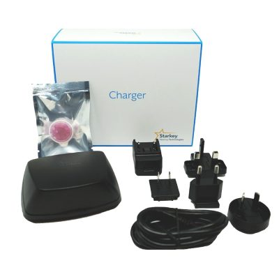 Starkey Charger is a charging station for your hearing aid. It’s easy and intuitive to use. When the hearing aid needs charging, the entire hearing aid is placed in the charger, which is designed for this exact purpose.