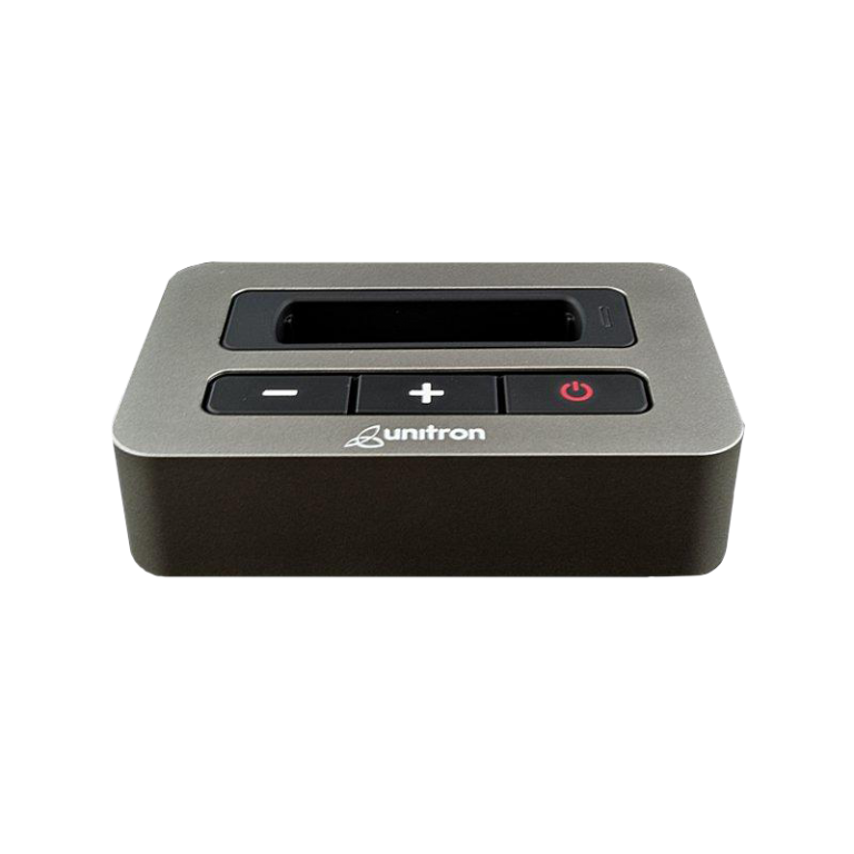 Unitron uTV 2 receives the sound from your TV and sends it directly to your hearing aids wirelessly.
